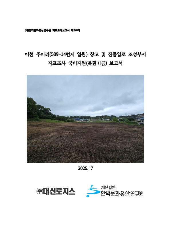 이천 주미리(589-14번지 일원) 창고 및 진출입로 조성부지 지표조사