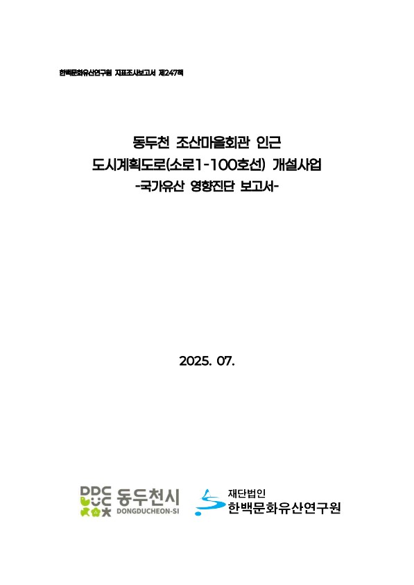 동두천 조산마을회관 인근 도시계획도로(소로1-100호선) 개설사업 국가유산 영향진단