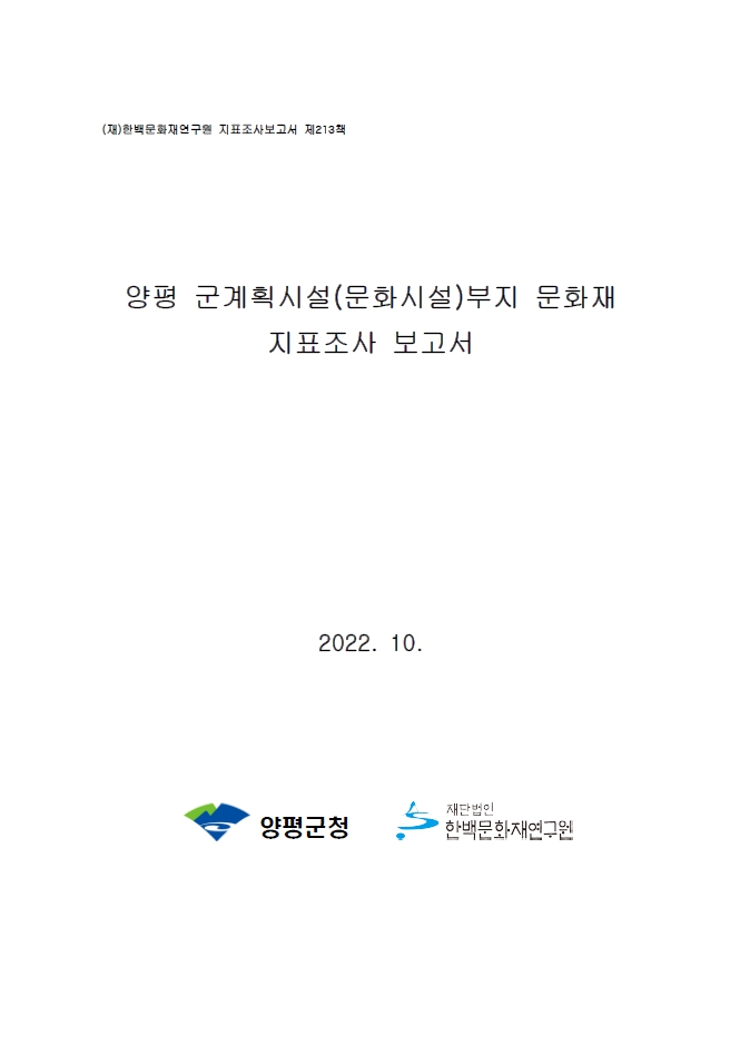 양평 군계획시설(문화시설) 부지 문화재 지표조사