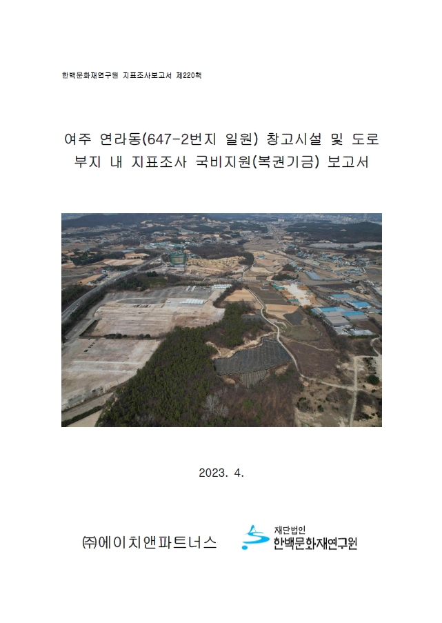 여주 연라동(647-2번지 일원) 창고시설 및 도로 부지 내 지표조사 국비지원(복권기금)